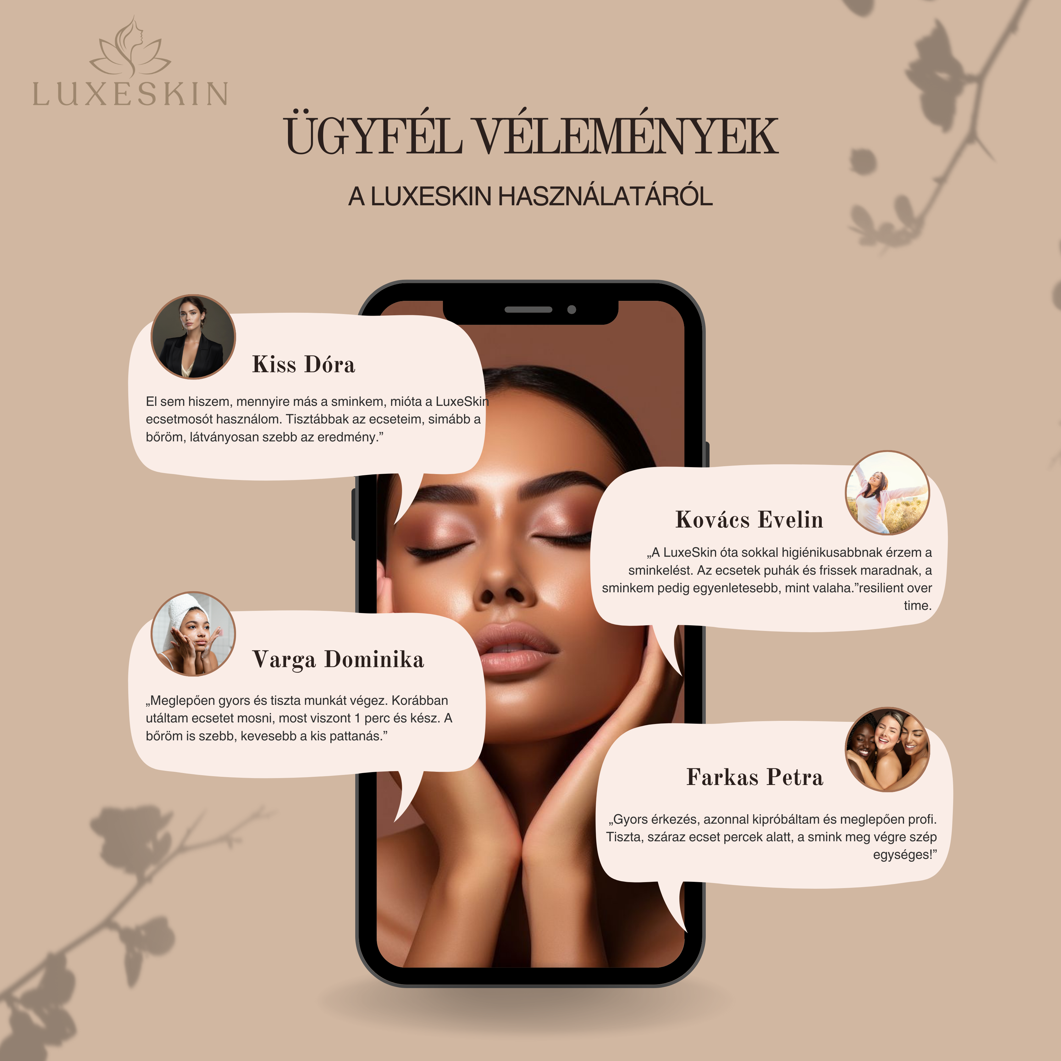A koszos ecset tele van sminkmaradvánnyal, olajjal és baktériumokkal – ezek pattanásokat, irritációt és egyenetlen sminket okozhatnak. A LuxeSkin™ pillanatok alatt megszabadít mindettől, kézi mosás nélkül.